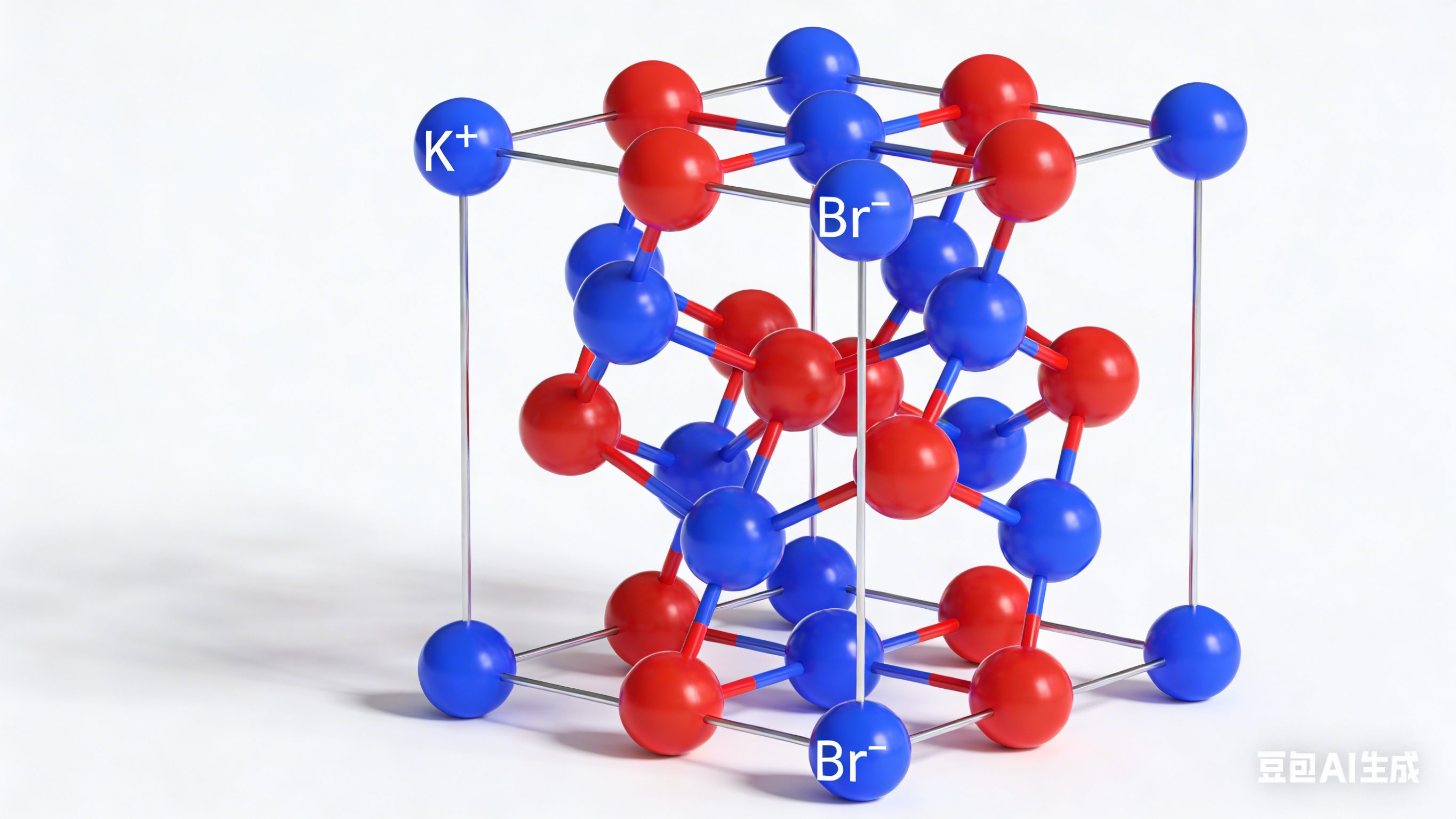 溴化鉀是由鉀離子(K?)和溴離子(Br?)構成的簡單鹽類物質。其晶體結構與食鹽(NaCl)類似,為面心立方晶格。這種結構決定了它具有良好的結晶性與物理穩定性。常溫下,它的熔點為734°C,沸點達1435°C。